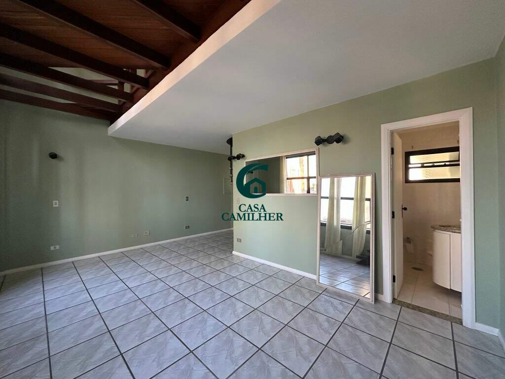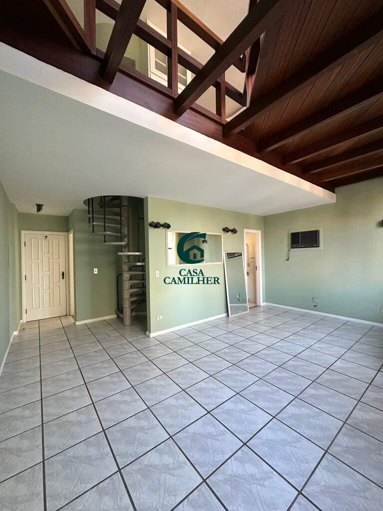 Apartamento Duplex no CentroNo piso inferior: sala 2 ambientes, lavabo, cozinha planejada, área de serviço e varanda. Piso superior: ampla suíte, que pode ser convertida em 2 dormitórios e o wc completo (banheira, aquecedor e gabinete). Ar condicionado nos 2 pisos, edifício muito bem cuidado e administrado, somente dois apartamentos por andar, sol da manhã. Excelente localização ! Estuda permuta por apartamento de maior valor. Agende já sua visita!