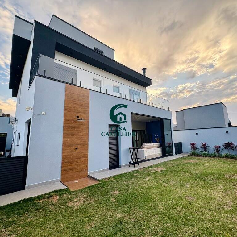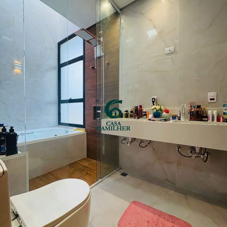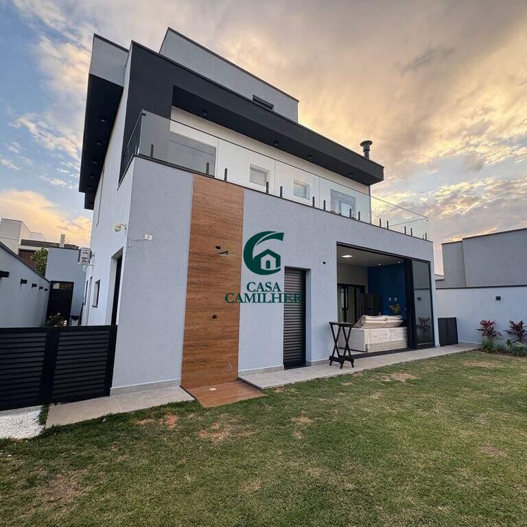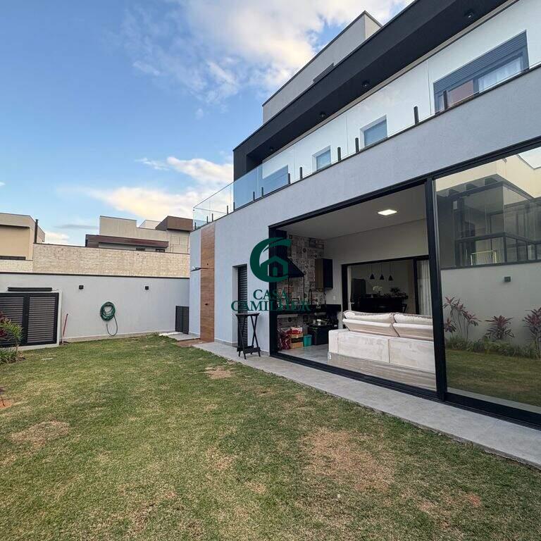 ? Belíssimo Sobrado em Condomínio Fechado Este imóvel exclusivo conta com 3 suítes, sendo uma delas a suíte master equipada com closet e banheira ?. No pavimento superior, dispõe também de uma aconchegante sala de TV. Na parte inferior, o sobrado oferece: ?? Escritório ? Lavabo ?? Sala de estar ? Cozinha americana integrada ? Lavanderia ? Área gourmet completa ? Banheiro externo ? Garagem para 2 carros cobertos + 2 descobertos ? Condomínio completo para sua família: ? Sala de jogos ?? Academia ? Piscina ? Quadra de tênis ? Quadra poliesportiva ? Área gourmet ? Salão de festas ?? Portaria e ronda 24h ? Agende já a sua visita e encante-se com este sobrado de alto padrão!