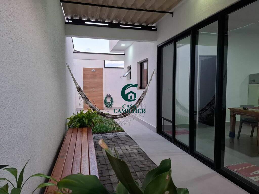 Condominio Catagua Way Sul - Em boa localização, próximo a rodovia Osvaldo Cruz. Ainda te permite fácil acesso a Dutra e ao Centro. Casa com 275m² de terreno e 150m² de área construída, distribuídos em 3 dormitórios com 2 suítes, banheiro social, sala, cozinha, área de serviço. Disponível 2 vagas de garagem coberta. A casa possui acessibilidade com corredor de 1,50 em ambos os lados. Sala de jantar e estar integrados pé direito em toda casa com 3 mts de altura, cozinha toda planejada, com ilha, bancada em porcelanato, fogão cooktop, exaustor e forno elétrico. Espaço gourmet com pia armários planejados e churrasqueira a gás . São 2 suítes uma com closet e ar condicionado, está preparada para instalar aquecedor solar com tubulações de água quente em todas as torneiras e chuveiros. Condomínio oferece portaria virtual 24horas com controle de acesso, ronda 24 horas com moto, lago com pista de caminhada, parquinho infantil, Quadra de areia, quiosque com churrasqueira.
