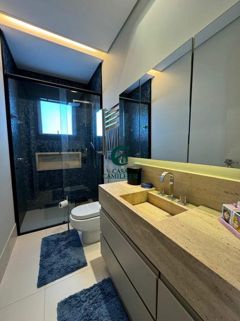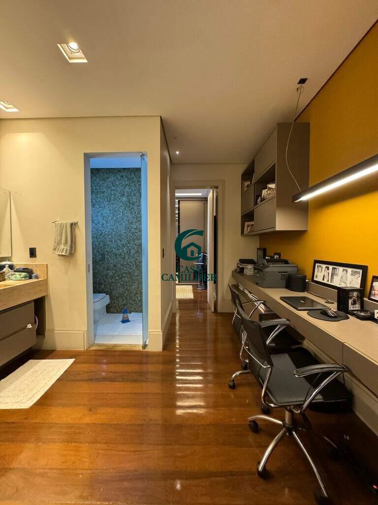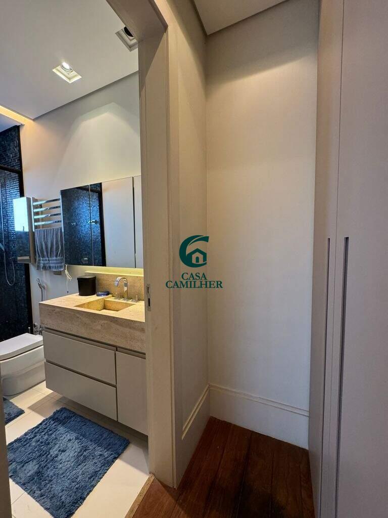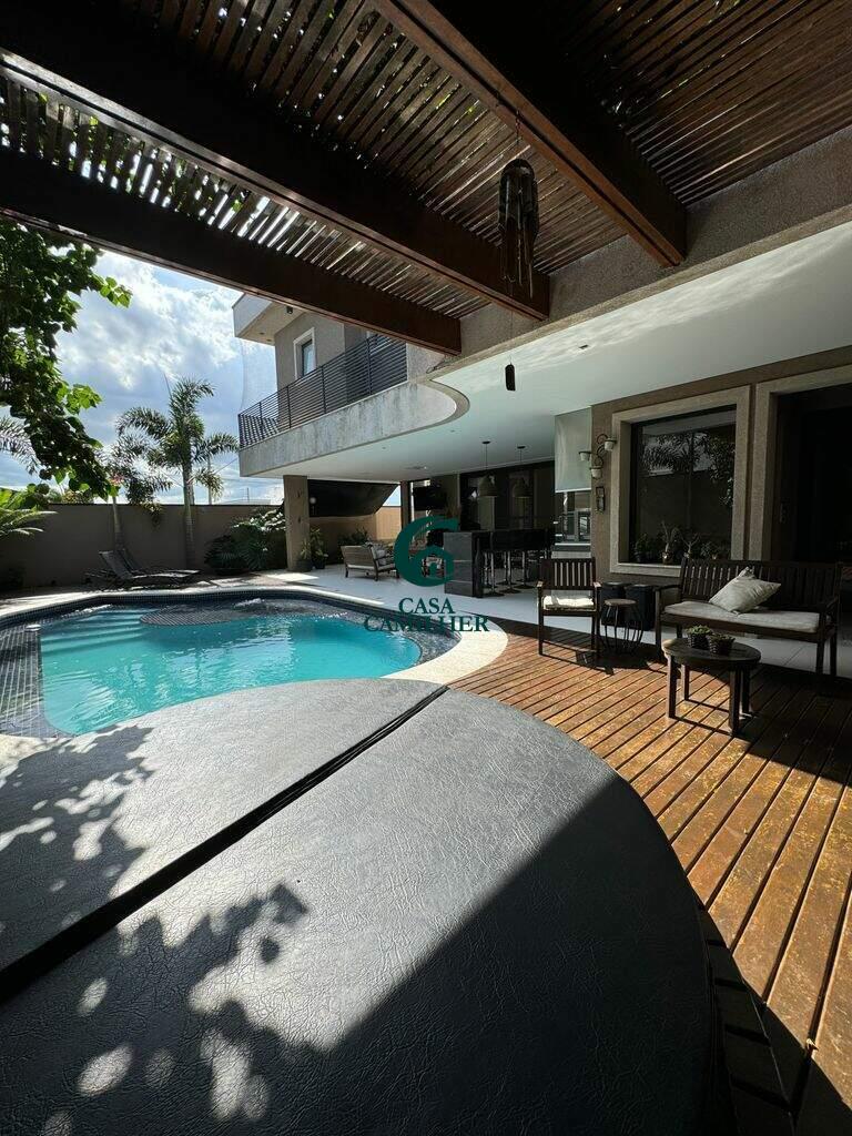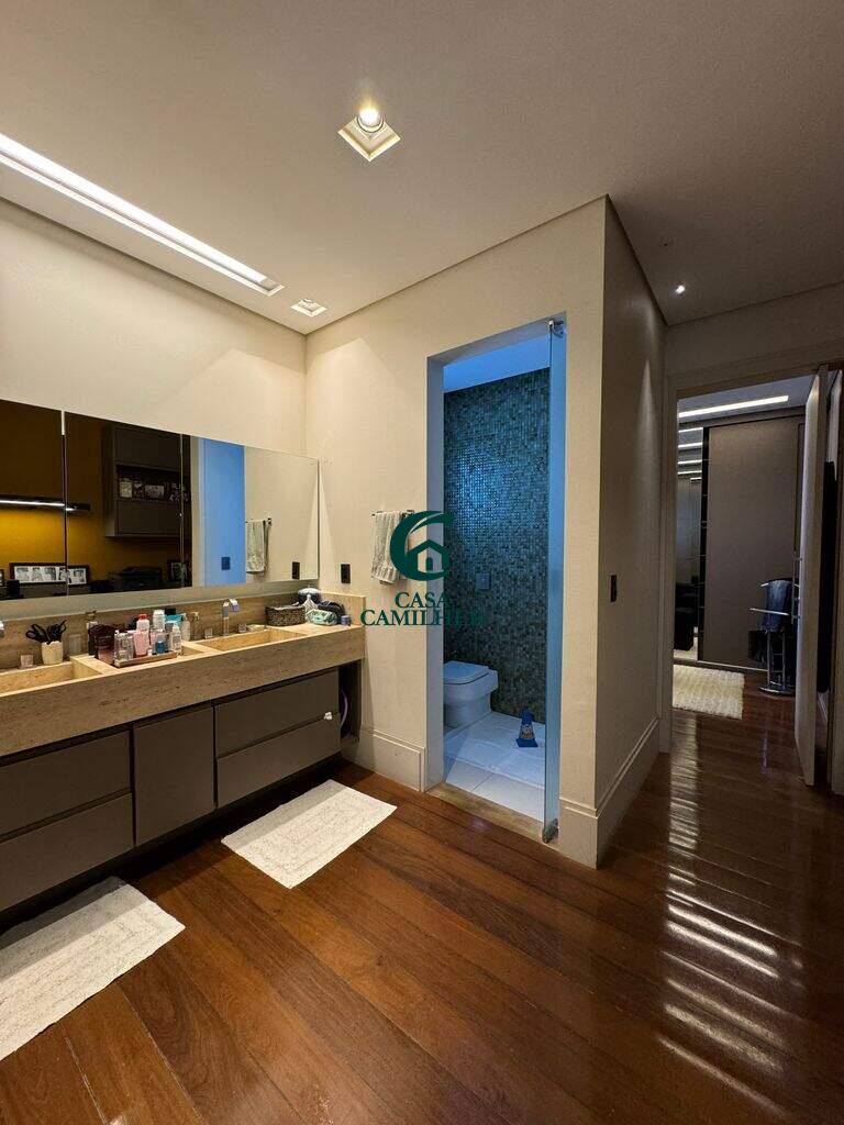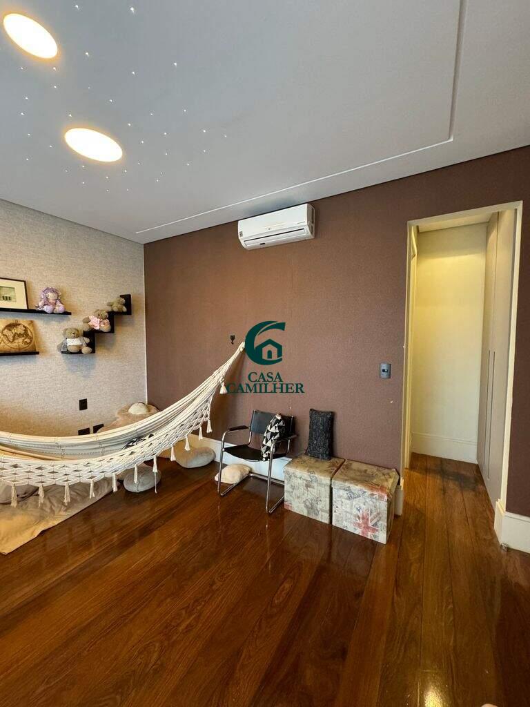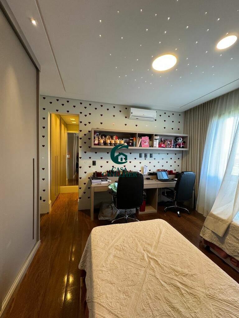 Belíssima Casa em Condomínio Fechado. Condomínio: San Marco Área do Terreno: 505m2 Área Construída: 490m2 Valor de Venda R$3.600.000,00 A casa possui: No pavimento térreo: - Sala de Jantar e estar integradas à cozinha, separadas da área externa gourmet por portas corrediças de vidro e portas de telas de nylon. - ?Lavabo - ?Chapelaria montada entre o lavado e a escada na área onde futuramente poderá ser instalado um elevador, que já tem construído o respectivo poço. - ?Cozinha com planejados - ?Ampla área de serviço com 2 tanques de inox e planejados. - ?Amplo depósito com planejados - ?Banheiro de empregada com box e chuveiro elétrico. No pavimento superior: - 3 Suítes sendo duas suítes de 16m2 com planejados e ar condicionado e uma suite master com 20m2 closet e planejados e Ar Condicionado. - Mezanino circulante com jardim suspenso na lateral e dispondo de roupeiros - ?Mini copa com armários embutidos - ?Sala de TV com alto falantes de teto já instalados e preparado para futura instalação de Home theater. Área de lazer: - Jacuzzi de hidromassagem para 4 pessoas com aquecimento a gás - ?Sauna a vapor com aquecimento a gás. - ?Piscina de 33m3 em azulejos com iluminação subaquática com aquecimento solar. - ?Espaço Gourmet com churrasqueira, fogão de duas bocas armários embutidos. - ?Sistema de som com 6 altos falantes já instalados sendo 2 altos falantes na sala de estar, 2 na sala de jantar e 2 na área gourmet. - ?Preparação para receber telão e compartimento rebatível também já instalado para receber projetor. - 4 vagas de garagem sendo 2 cobertas e 2 descobertas - ?Instalação trifásica com dispositivo de proteção contra sobrecarga elétrica. - ?Abastecimento de gás contendo 02 botijões P45. Área de lazer do condomínio: - Portaria segurança 24hs - Piscinas - Salão de festa - Quiosques com churrasqueiras - Playground - Quadra Poliesportiva