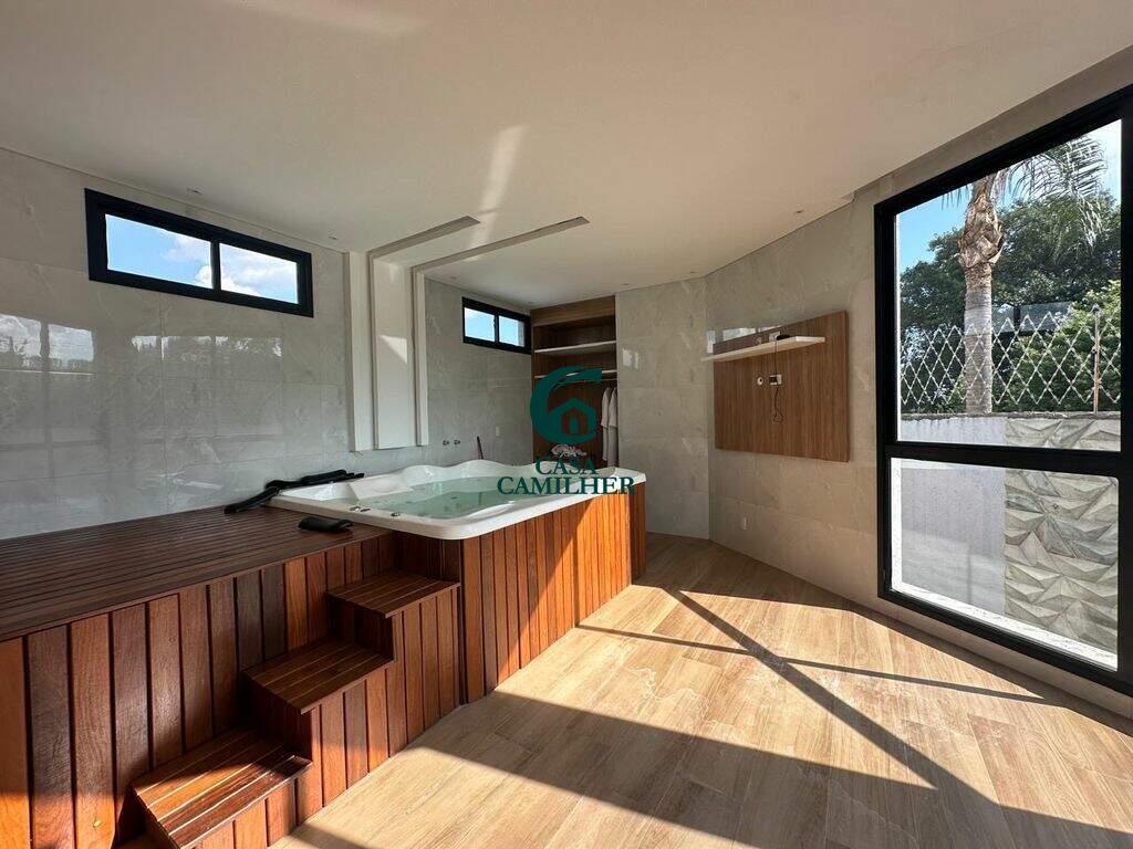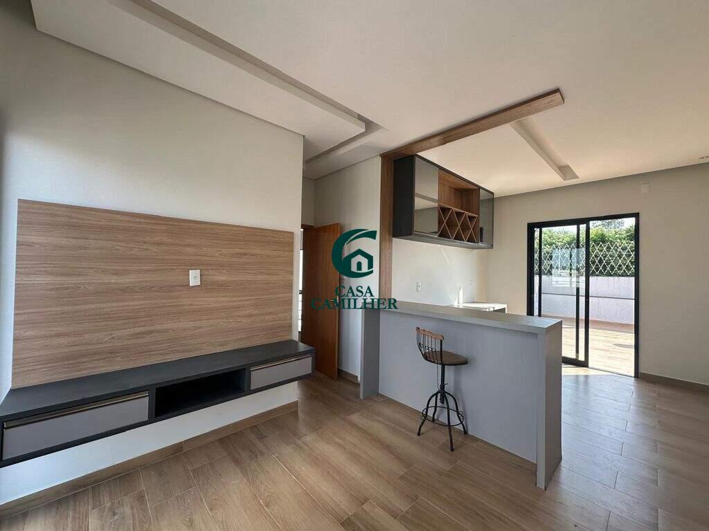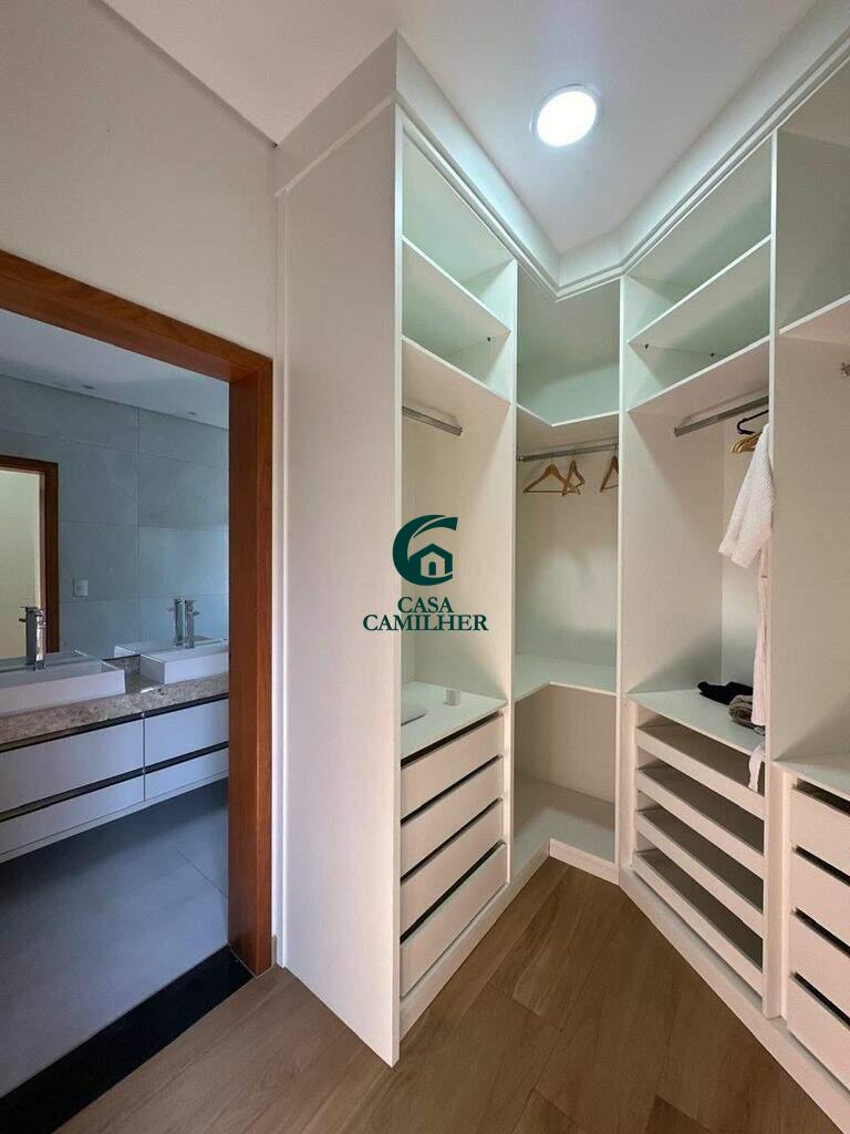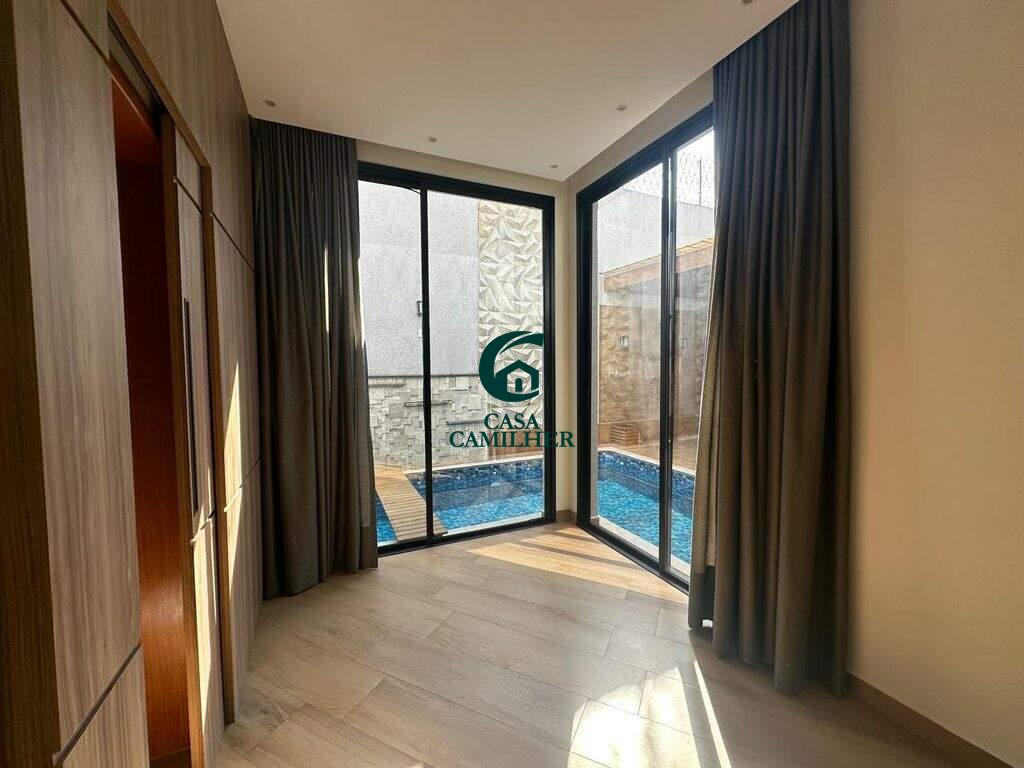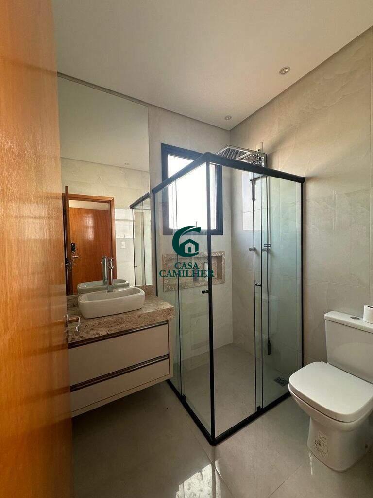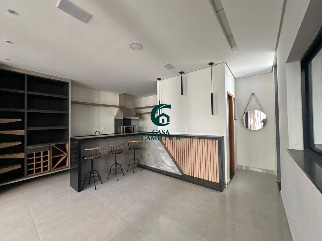 Casa Alto Padrão para Locação em Condomínio Exclusivo Desfrute do conforto e sofisticação desta belíssima casa de alto padrão, localizada em um condomínio fechado com estrutura completa de lazer e segurança. São 3 quartos, sendo 2 suítes, e 5 banheiros bem distribuídos, perfeitos para oferecer privacidade e comodidade. A área social conta com sala de estar ampla, sala de jantar, escritório, e um elegante bar. A integração com uma ampla varanda proporciona ambientes arejados e ideais para receber. A cozinha é totalmente planejada e equipada, acompanhada de uma prática área de serviço. O destaque vai para o espaço gourmet encantador, perfeito para momentos especiais com amigos e família, além de contar com uma piscina, spa com jacuzzi e sauna privativa ? um verdadeiro refúgio de bem-estar em casa. Garagem coberta para 2 carros. O condomínio oferece infraestrutura completa de lazer, segurança 24h e até mercadinho interno, trazendo mais comodidade e praticidade ao seu dia a dia. Agende uma visita e venha se encantar com seu novo lar!
