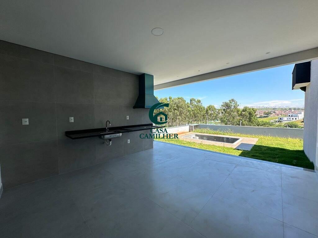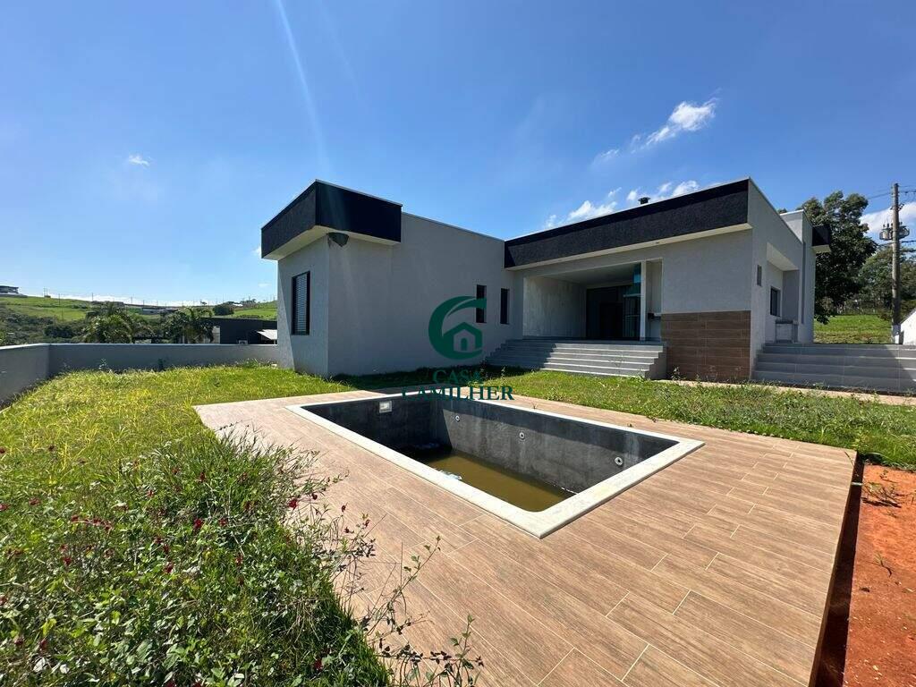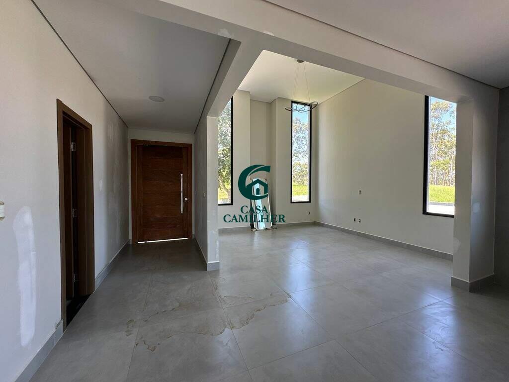 Residência térrea de alto padrão com piscina privativa em condomínio exclusivo! Projetada para quem valoriza conforto, sofisticação e integração com a natureza, esta elegante casa térrea conta com 3 suítes espaçosas, lavabo, salas de estar e jantar com conceito aberto, cozinha moderna, área de serviço funcional e uma área gourmet, ideal para receber com estilo. A piscina privativa harmoniza com o paisagismo e a arquitetura da casa, proporcionando momentos únicos de lazer e relaxamento. A garagem comporta até 4 veículos. Localizada em um condomínio de alto padrão, com infraestrutura de lazer completa, ruas arborizadas e vista deslumbrante para a Serra, essa é a escolha perfeita para quem busca qualidade de vida, segurança e exclusividade