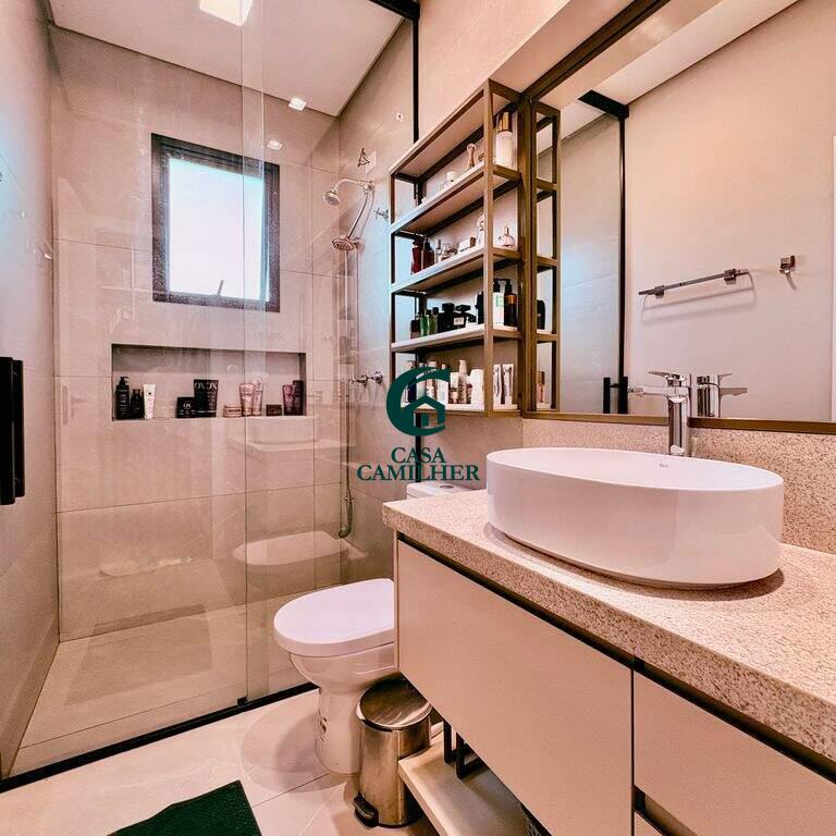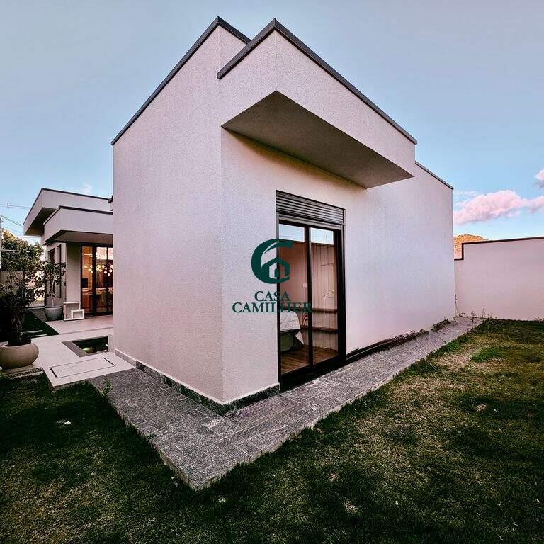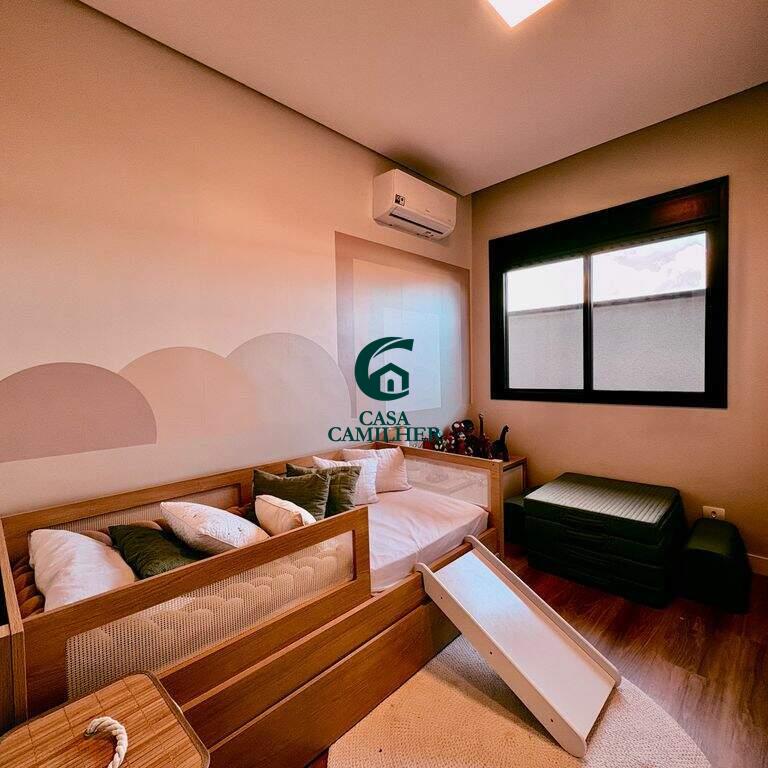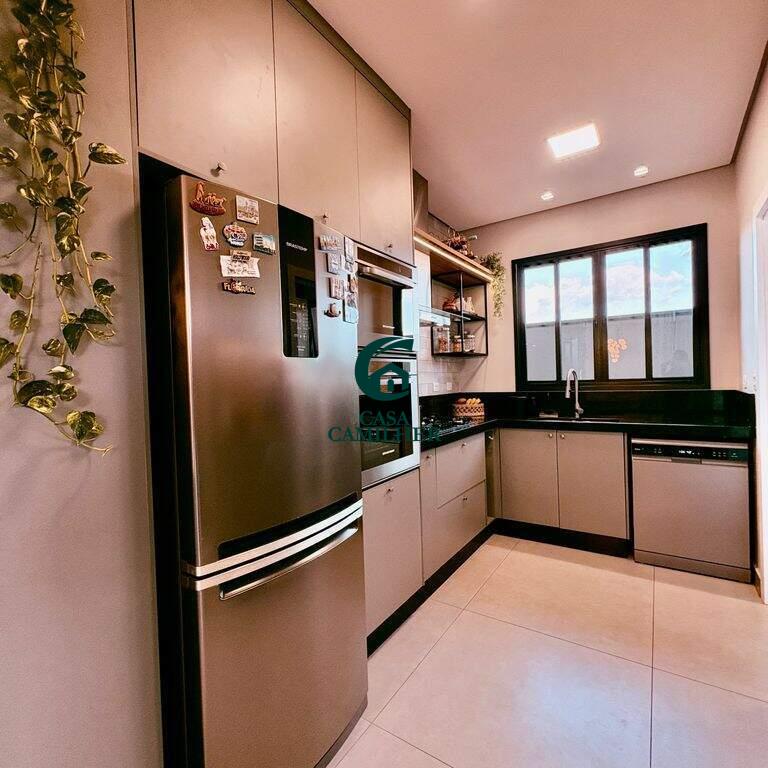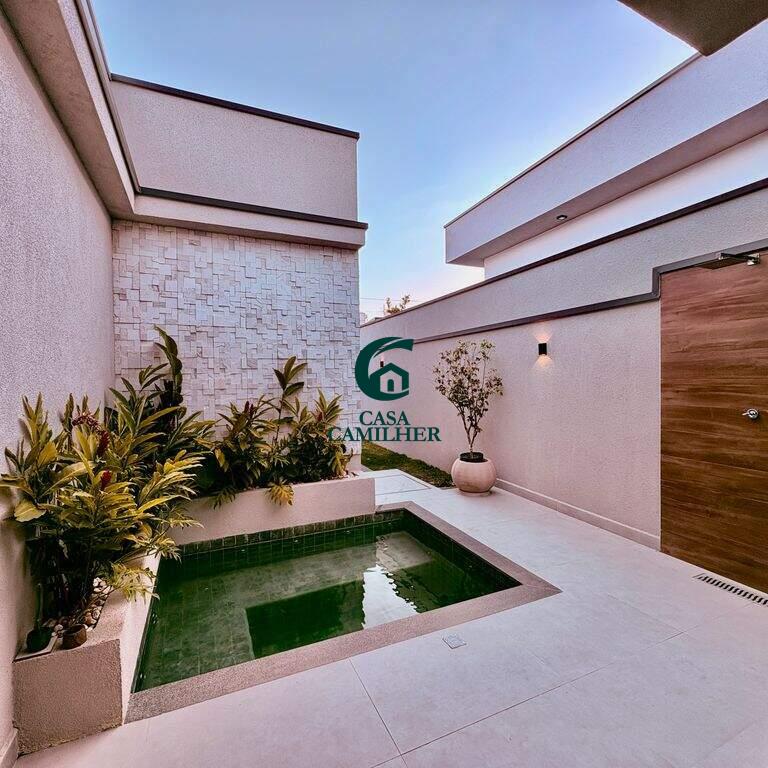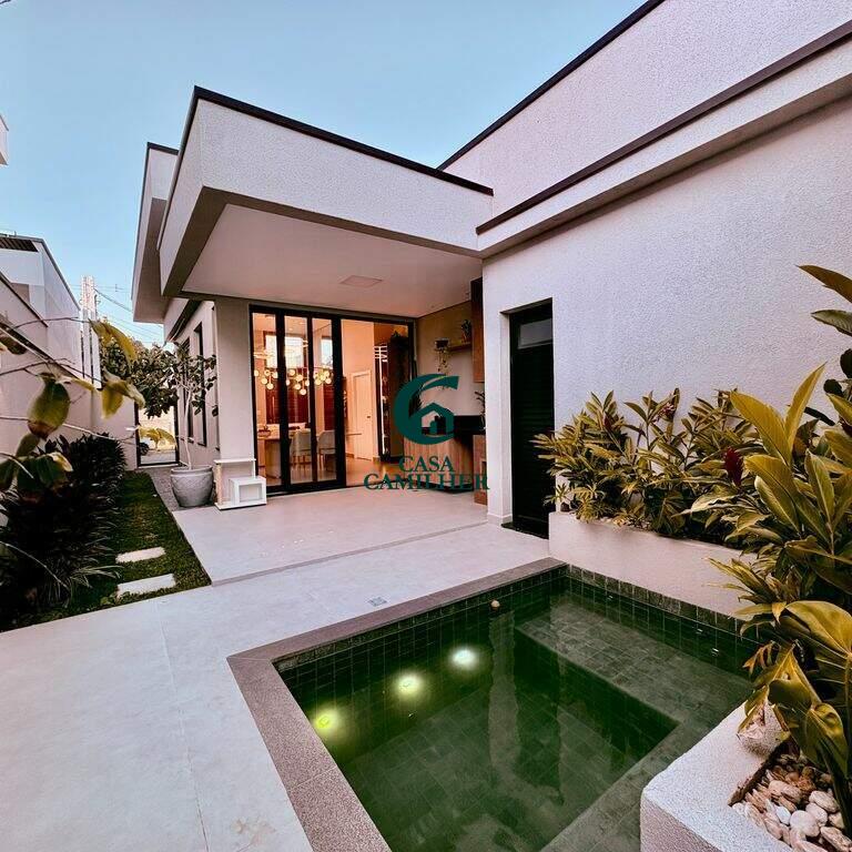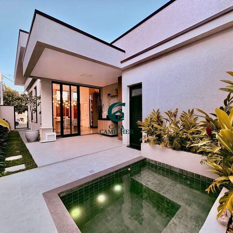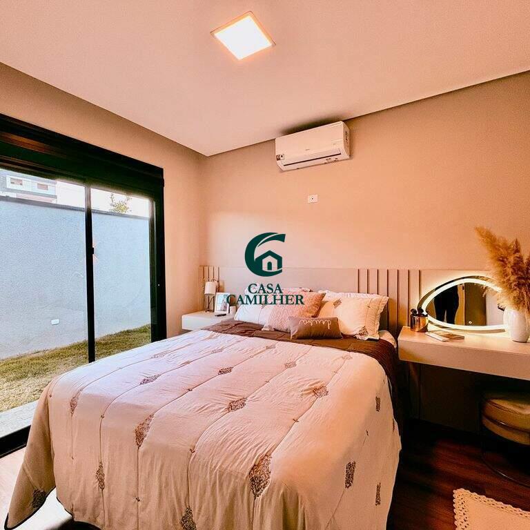 Condominio Cyrela com 292m² de terreno e 150m² de área construída, distribuídos em: ? 3 suítes um com closet, ? 2 lavabos (interno e externo), ? Sala 2 ambientes, ? Cozinha, ? Área de serviço, ? Escritorio, ? Área gourmet, ?Quintal, ? Disponível 2 vagas de garagem coberta com infraestrutura para ser instalado Walbox (carregador de carro eletrico). ? Casa terrea, ? Piscina com aquecimento solar e pontos de hidromassagem, ? Planejado na cozinha, banheiros e closet, ? Ar condicionado nos dormitorios e sala, ? Sistema de energia fotovoltaico, ? Ducha fria, Área de lazer com: ? Piscina adulto e infantil, ? Salão de festa, ? Área gourmet, ? Academia. E para sua segurança oferece portaria 24h, interfone e sistema de câmeras.