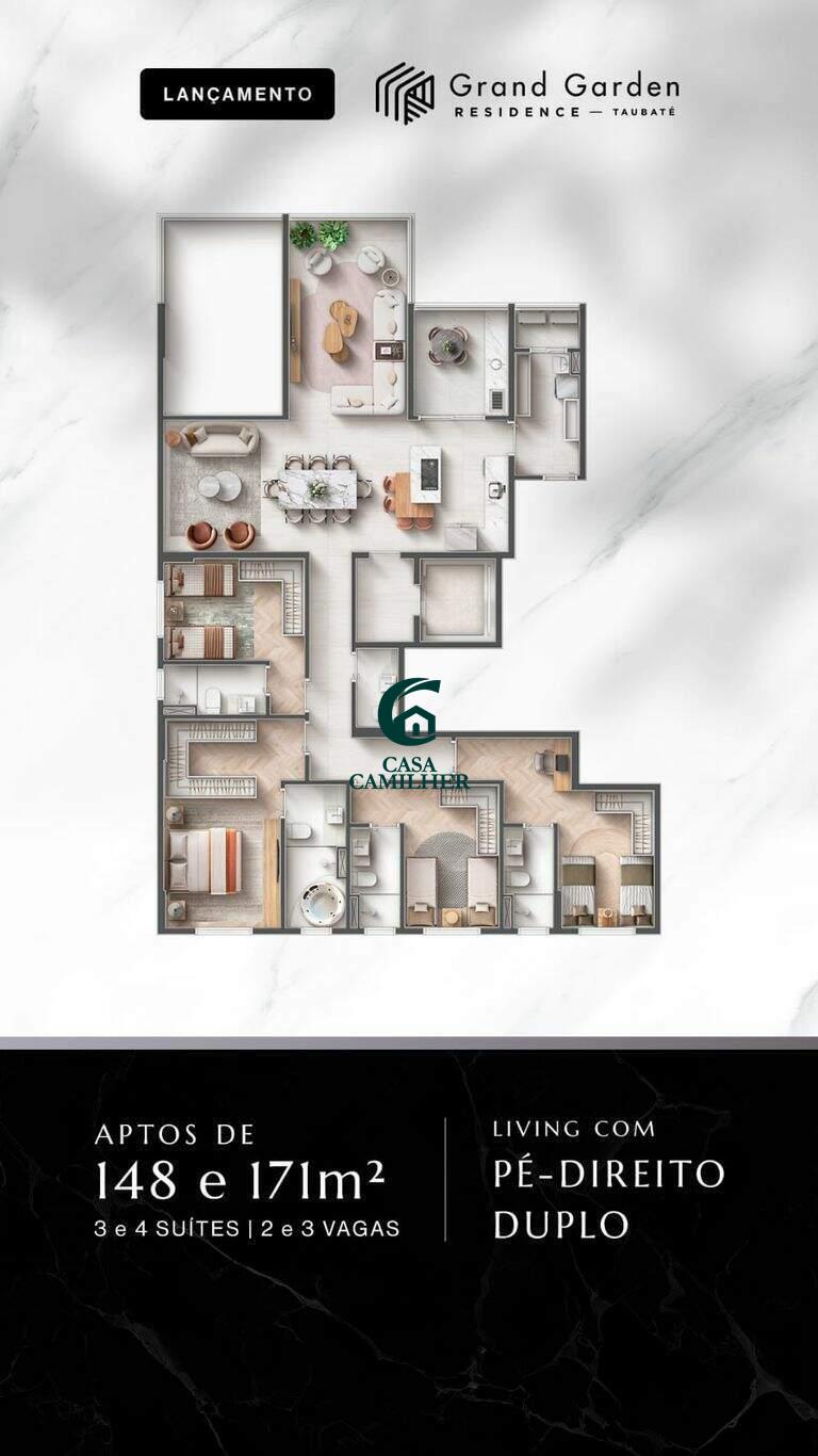 ?? GRAND GARDEN TAUBATÉ ? O MAIOR E MAIS ELEGANTE LANÇAMENTO DA CIDADE! Você merece morar em um lugar que eleve o seu estilo de vida. Chegou o Gran Garden da Ticem Realty, um empreendimento que une sofisticação, exclusividade e localização estratégica no coração de Taubaté! ?? A poucos passos do Taubaté Shopping, em uma das regiões mais valorizadas da cidade! --- ? DIFERENCIAIS QUE ENCANTAM ?? Apartamentos amplos de 148 a 171m² ?? 3 a 4 suítes com acabamento premium ?? 2 a 3 vagas de garagem ?? Living espaçoso, hall privativo e integração total entre ambientes ?? Plantas modernas e funcionais para toda a família ? CLUBE PRIVATIVO COMPLETO ?? Sky Lounge 360 com piscina de borda infinita ? Casa de Campo com piscina e gourmet exclusivo ? Fitness interno e externo ? Espaço Mulher, Espaço Influencer & Coworking ? Pet Place, brinquedoteca e muito mais! ?? Mall Boutique com lojas no térreo para sua praticidade ? Infraestrutura para carro elétrico e hobby box ? Ideal para quem quer morar bem ou investir com segurança. ? Condições exclusivas de pré-lançamento! ? Entre em contato agora mesmo e garanta condições especiais de lançamento. ? Não perca a chance de morar no empreendimento mais completo de Taubaté!