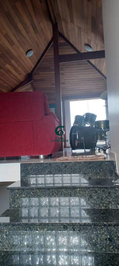 Características do imóvel :- 5 Dormitórios- 2 Suítes (1 suíte Master)- Banheira com hidromassagem- 3 Banheiros Sociais - Sala 2 ambientes- Escritório- Sala TV pé direito duplo- Cozinha - Espaço Gourmet com churrasqueira- Área de Serviço- Piscina com cascata- 2 Vagas de garagemCaracterísticas do Condomínio:- Condomínio fechado- Segurança 24h- Área murada- Permitido animais- Portão eletrônico- Piscina