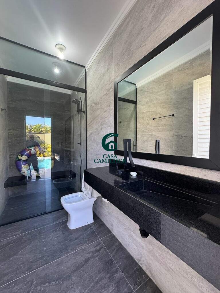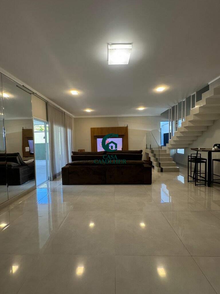 Condominio San Marco - Em boa localização, próximo ao supermercado Shibata, cercado por comércios e variedades essenciais para o seu dia a dia. Ainda te permite fácil acesso ao centro em apenas 10 min. Sobrado com 450m² de terreno e 320m² de área construída, distribuídos em 4 suítes (2 sendo na parte inferior), sala 3 ambientes, cozinha, área de serviço, área gourmet com piscina. Disponível 2 vagas de garagem coberta. Sobrado com moveis planejados nos dormitorios, banheiros, cozinha e área gourmet, dormitorios com ar condicionado. Área de lazer com salão de festa, área gourmet, quadras. E para sua segurança oferece portaria 24h e sistema de câmeras.