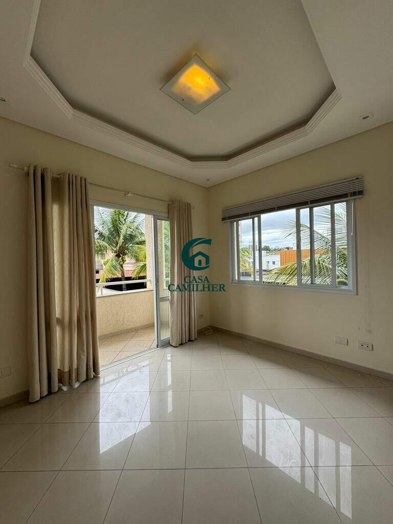 Sobrado no Taubaté Village com terreno de 418m² e 299m² de área construida. Distribuidos em: Piso inferior - Sala, anti - sala, escritorio, lavabo, 1 suite, cozinha, área de serviço, área gourmet com espaço para ofuro com banheiro, área para sauna, piscina e 2 vagas cobertas e 2 descobertas. Piso superior - Sala com sacada e 3 suites, uma sendo master com banheira. Todos os quartos com sacada e ar condicionado. Planejado na cozinha.