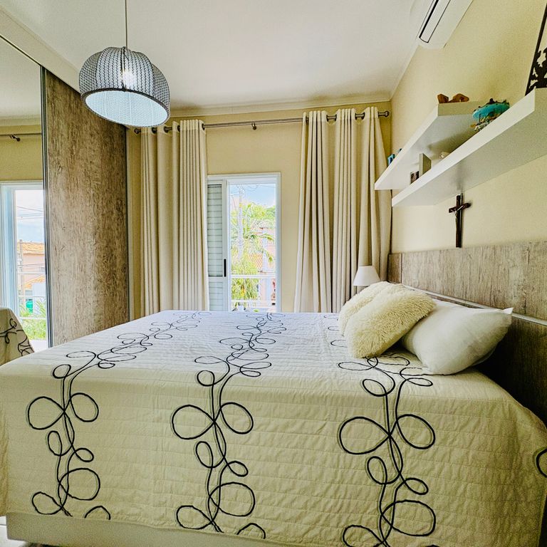 Sobrado de muito bom gosto em condomínio fechado em Taubaté, com área de lazer completa. Possui 3 dormitórios, sendo 1 suíte, ambientes integrados e bem iluminados, sala de estar e jantar com ótimo acabamento, cozinha planejada, lavabo, área de serviço, quintal privativo e vagas de garagem. O condomínio oferece estrutura de lazer completa com piscina, salão de festas, churrasqueira, playground, quadra esportiva e portaria 24 horas ? ideal para quem busca conforto, segurança e qualidade de vida.