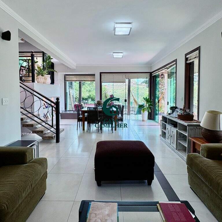 Condominio Chacara dos Lagos - Em boa localização, cercado por comércios e variedades essenciais para o seu dia a dia. Sobrado com 900m² de terreno e 320m² de área construída, distribuídos em 4 dormitórios com 2 suíte, banheiro social, lavabo, 2 salas, cozinha, área de serviço, área gourmet, piscina, ofurô, quintal. Disponível 2 vagas de garagem coberta. Sobrado com adega, dispensa embutidos, área de estúdio ou escritório, lareira. Condominio com quadra e para sua segurança oferece portaria 24h, interfone e sistema de câmeras.