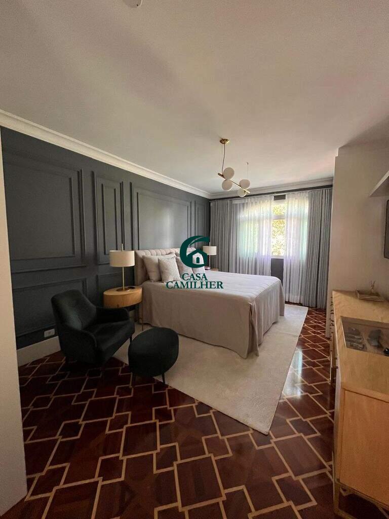 Altos da Serra 2 - Em boa localização, cercado por comércios e variedades essenciais para o seu dia a dia. Sobrado com 450m² de terreno e 370m² de área construída, distribuídos em 4 dormitórios com 2 suítes, banheiro social, sala, cozinha, área de serviço. Disponível 5 vagas de garagem sendo 2 cobertas. Hall de entrada em mármore. Piso da casa toda madeira, dormitorios todos planejados com marcenaria premium ( Fereli - marcenaria), lareira, cozinha planejada ( Fereli), piscina aquecida , paisagismo presente. Parte hidráulica e iluminação toda reformada. Área de lazer com piscina, salão de festa, área gourmet e para sua segurança oferece portaria 24h, interfone e sistema de câmeras.