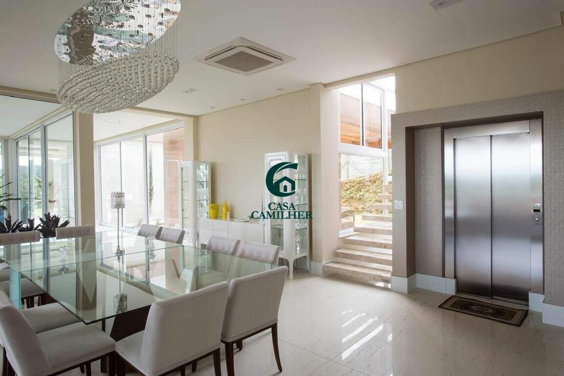 Sobrado com 5 dormitórios, 1180 m² - - Condomínio Residencial Altos da Quinta - São José dos Campos/SP Luxuosa casa á venda no Condomínio Altos da Quinta em São José dos CamposDescrição do Imóvel :- Living amplo com pé direito alto - Sala de cinema com som embutido e sistema Sun round 7.1- Corredor com espelho dágua - Espaço com lareira e pergolado- Sala de jantar com mesa p/ 12 pessoas- Elevador de acesso com 3 paradas - Cozinha e espaço gourmet integrados - Despensa e área de serviços - Espaço Gourmet amplo e equipado com churrasqueira a gás - Academia, vestiário e sauna com saída para a piscina - Piscina com borda infinita - Living externo conectado com toda a casa - Pavimento superior com 5 suítes planejas, todas com closet e claraboia 10 vagas de garagem coberta Diferenciais: Infraestutura para automação, todos os ambientes climatizados, infraestrutura para carregamento de carro elétrico, dormitório de serviço com banheiro, hobby box e quintal para pomar. Condomínio composto por:Área Verde e de Lazer com 26.950m²Quadra PoliesportivaSalão de FestasSaunaSala de DescansoEspaço GourmetQuadra de TênisPista de Cooper3 Praças de ConvivênciaAgende uma visita!