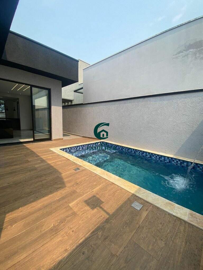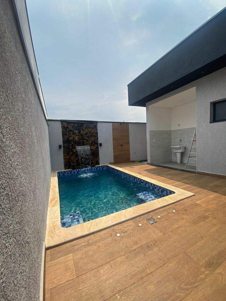 Vendo Belíssima casa em Condomínio Fechado com piscina Condomínio: Ouroville A casa possui: - 3 quartos sendo 1 Suíte e dois quartos Double Suite - Sala de TV - Cozinha - ?Area Gourmet - ?Piscina - ?Lavanderia - Garagem para 2 carro cobertos - ?Sistema de Fotovoltaico que gera 550W O condomínio oferece: - Academia - ?Salão de Festa - ?Piscina - ?Quadra poli esportiva - ?Portaria 24hrs - ?Mini mercado